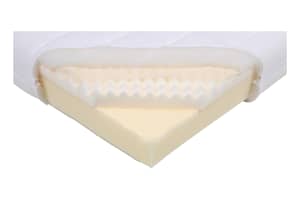 Babyledikantmatras van 61 x 120 cm met een kern van schuim, met daar bovenop een dunnere laag geheugenschuim. De tijk is afneembaar maar mag alleen op de hand worden gewassen. De tijk is niet in twee delen afneembaar, dus je kunt niet een helft van de tijk om de matras laten zitten terwijl je de andere helft wast. Omdat de tijk alleen met de hand mag worden gewassen is het de vraag of je de tijk op tijd droog kunt krijgen.