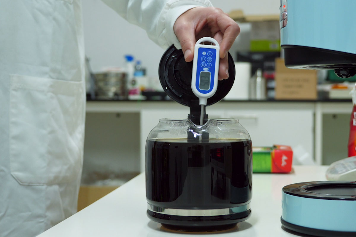De temperatuur van de koffie in een thermoskan wordt gemeten na 1, 2 en 4 uur. Dit oordeel wordt niet meegewogen, maar als de kan onvoldoende isoleert krijgt het apparaat met thermoskan puntenaftrek.