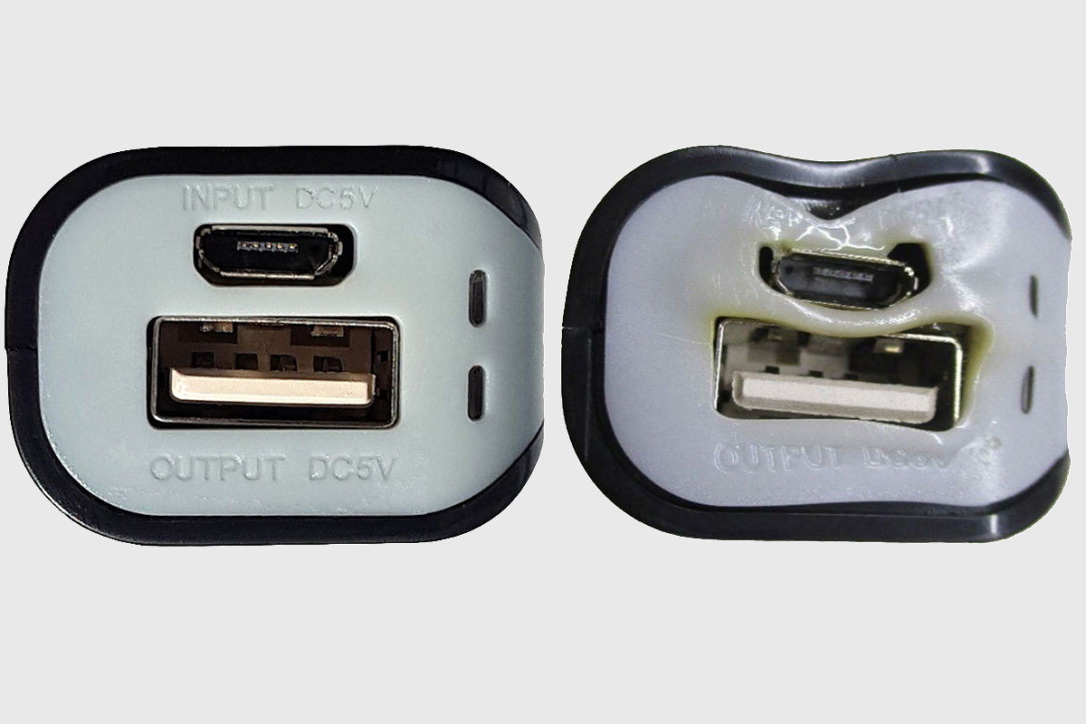 Bijna driekwart van de powerbanks, usb-laders en reisadapters kwam niet door de veiligheidstest. Ze kunnen een schok geven, oververhit raken, smelten en zelfs in brand vliegen.