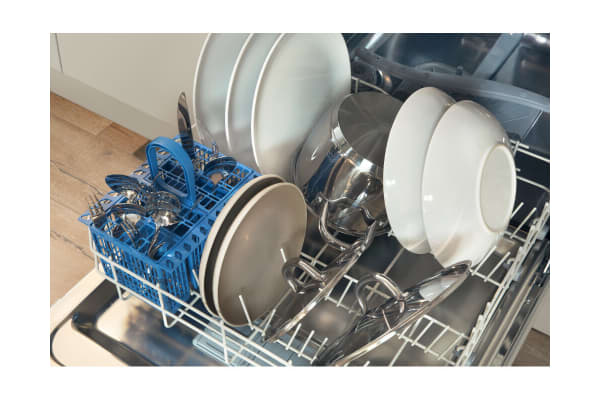 De vrijstaande Indesit DFP 58B+96 NX E is geschikt voor 14 couverts. Het bovenblad kan eraf, daardoor is hij ook onder te bouwen. In de vaatwasser zit een bestekkorf die verplaatsbaar is. Hij beschikt over geen inklapbare houders onder en een paar inklapbare houders boven. Er zit startuitstel op van 1 tot 24 u.