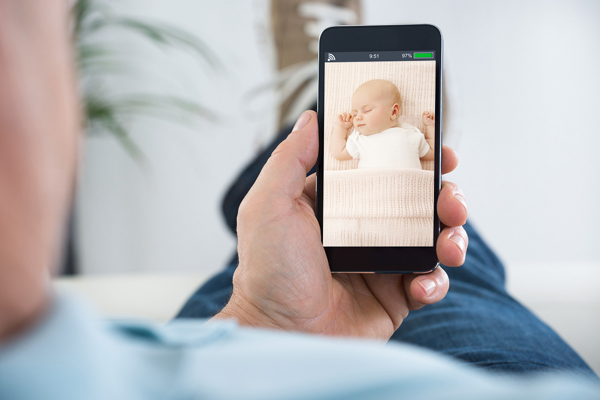 Met een gewone babyfoon en eventueel een webcam kun je een gezonde baby prima in de gaten houden.