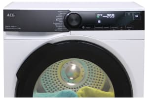 De AEG TR868B4B is een warmtepompdroger met een vulcapaciteit van 8 kg en energieklasse B. Er zitten 12 droogprogramma's op, waaronder een programma voor wol, outdoor en dekbedden of dons. De droger heeft verlichting in de trommel, zodat je de was goed kan zien.