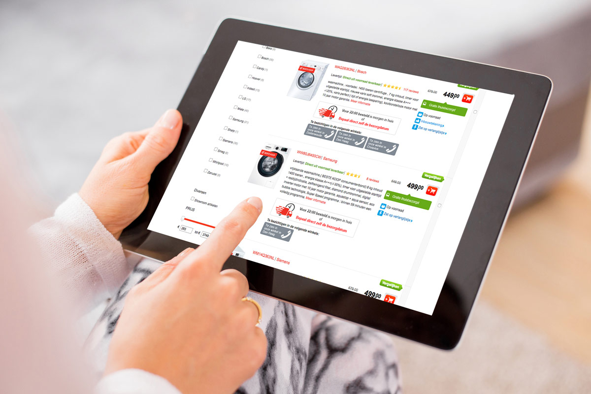 Het uitkiezen van een wasmachine, koelkast of droger is soms een hele opgave. Dus als je er een gekozen hebt, wil je die ook kopen. Helaas komt het nogal eens voor dat je na de bestelling een telefoontje of mailtje van de webwinkel krijgt met de boodschap dat het uitgezochte model niet meer leverbaar is. En met de vraag of je een 'opvolger' wilt. Of erger: sommige winkels zetten een ander model op de offerte, zonder waarschuwing.